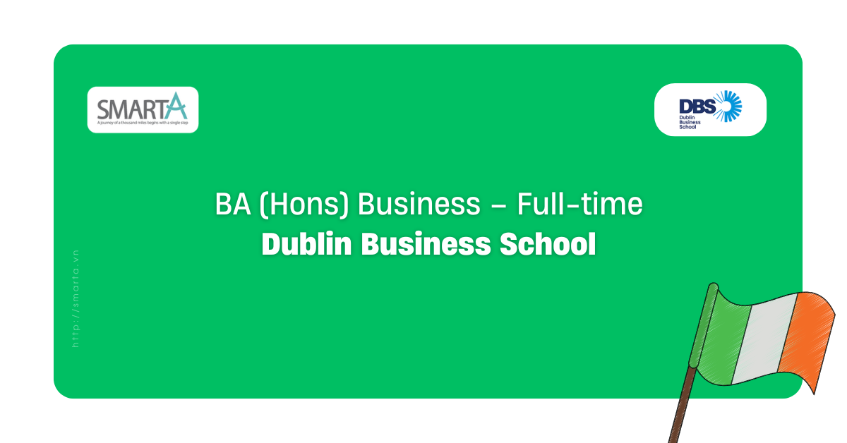 Chương trình BA (Hons) Business – Full-time tại Dublin Business School nhằm tạo ra những cử nhân kinh doanh toàn diện, với cái nhìn sâu sắc giúp định hướng và hỗ trợ các quyết định chiến lược, từ đó nâng cao năng suất, lợi nhuận và giá trị của tổ chức.